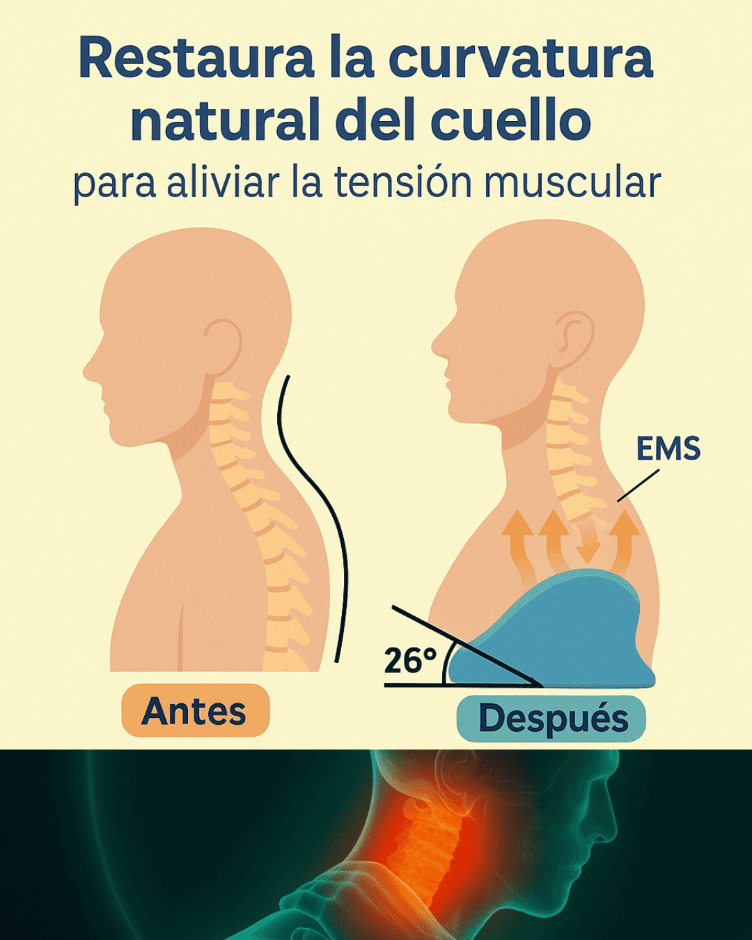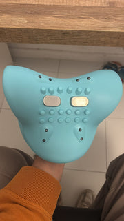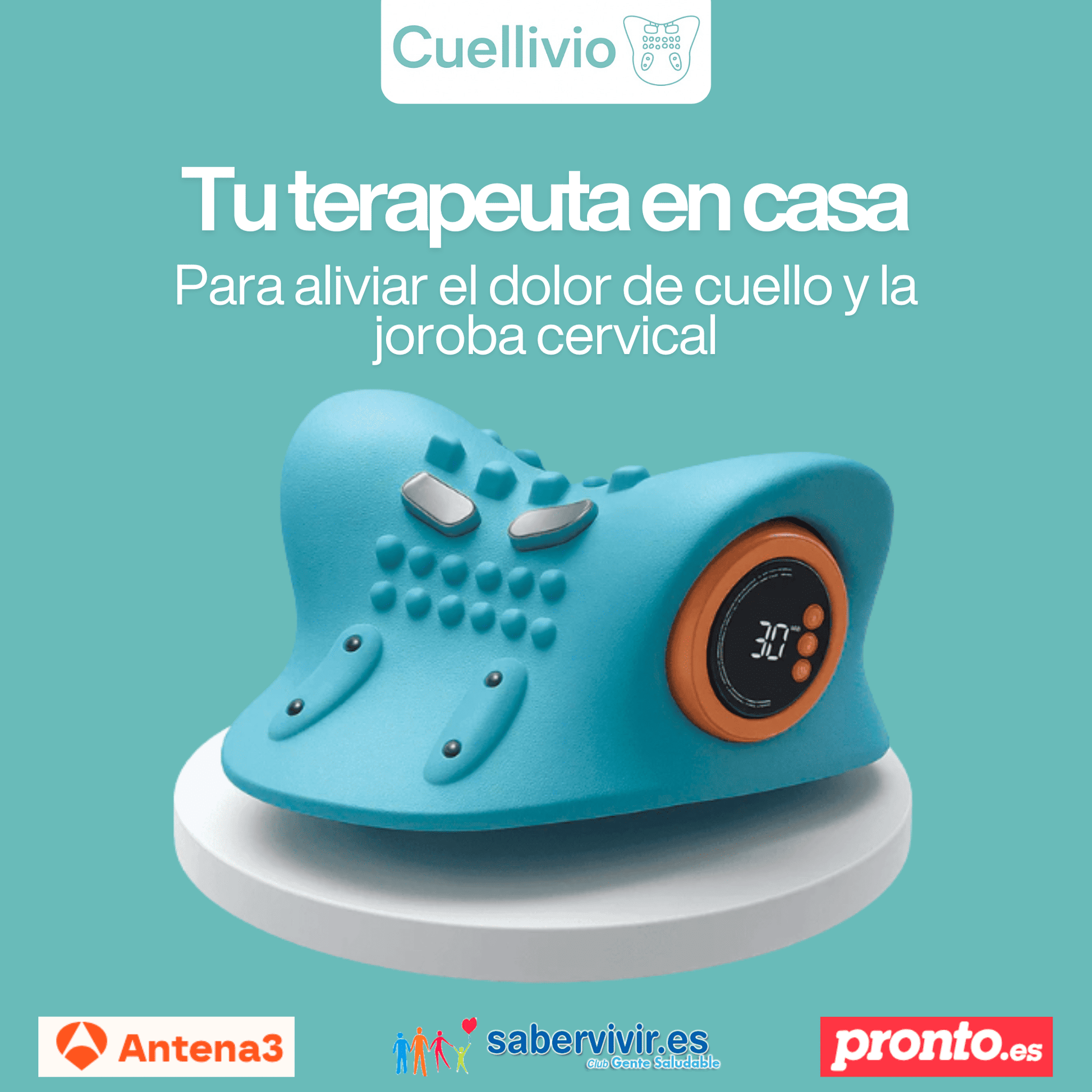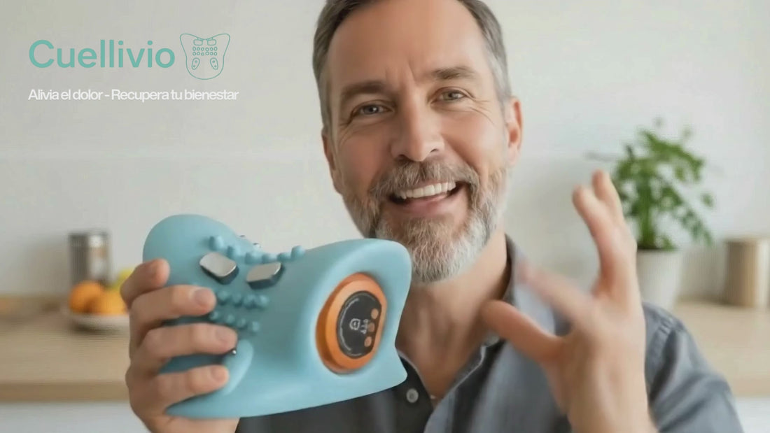 Ahora mismo estoy de viaje fuera del país y mi Cuellivio Masajeador viene conmigo a todas partes, para que te hagas una idea de lo mucho que lo valoro. Llevo más de 3 años con un nervio atrapado en el cuello que no me dejaba en paz, y este aparatito azul ha sido lo único que me ha dado un alivio constante (los fármacos ayudan, pero detesto tomarlos).
